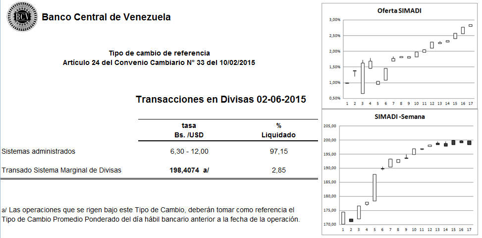 Tasa SIMADI al 02/06/2015 Bsf/$ 198,4074